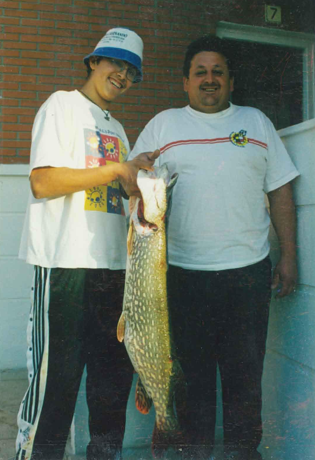Alejandro, junto a su padre, agarrando el lucio con el que quedo tercero de Castilla y Leon