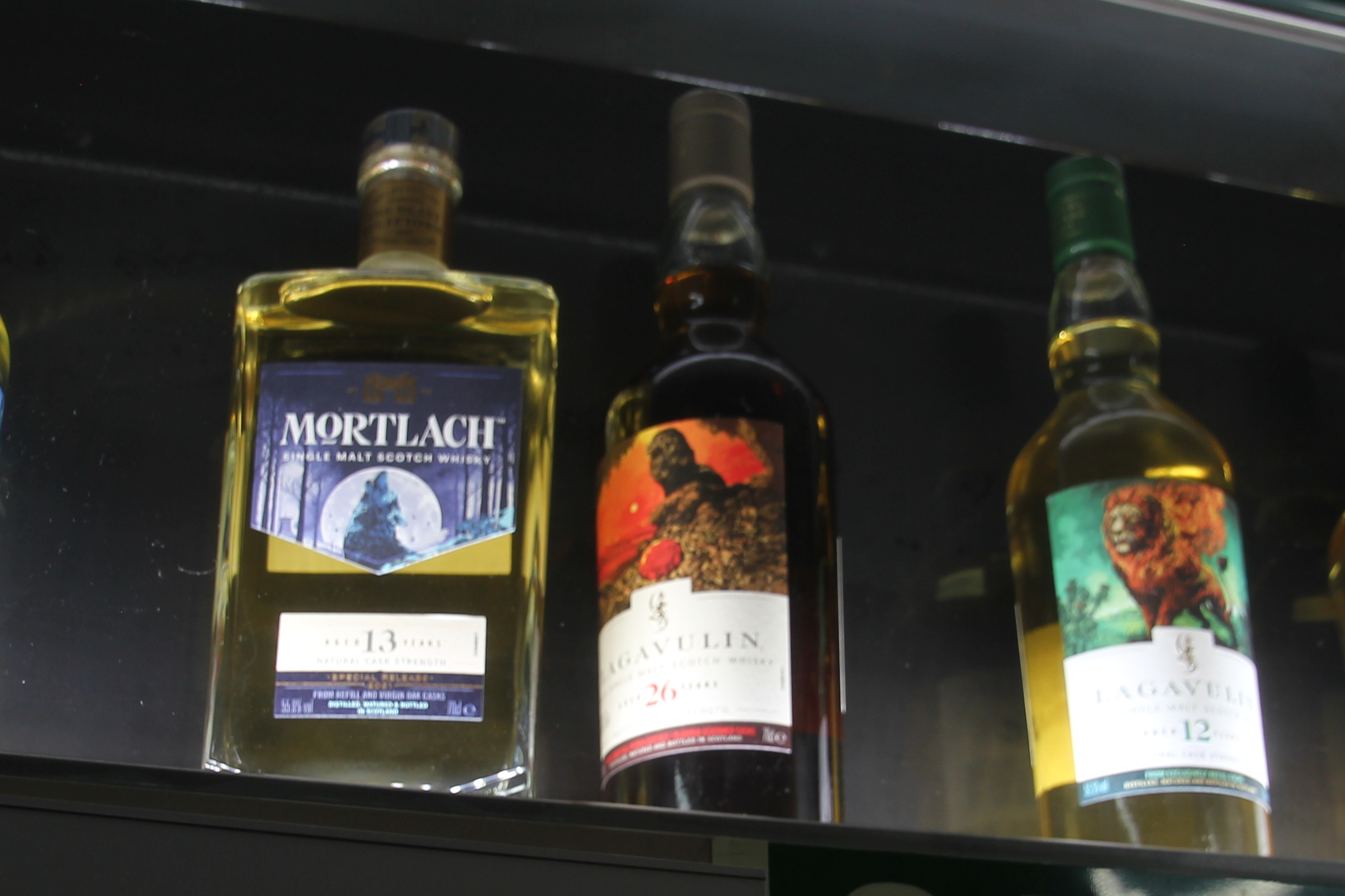 Para esta nueva aventura cuento con la inestimable colaboración de Javier Fierro, gran aficionado y consumidor moderado de este líquido espirituoso que volvía loco al mismísimo Capitán Haddock. Nada más entrar en el local las vistas ya impresionan, con un montón de estanterías y vitrinas repletas de whiskys por todos los rincones imaginables, y hasta en el suelo.