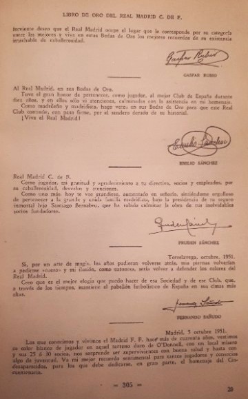 Firma y fotografías de Sañudo en el «Libro de Oro» del Real Madrid